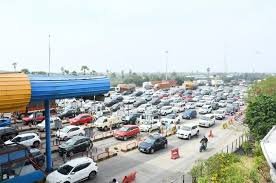With a large number of vehicles heading towards Andhra Pradesh, more toll booths have been opened. Cars and other vehicles are moving slowly. At Korlapahad in Kethepally mandal, vehicle drivers faced severe difficulties due to technical problems with the FASTag system. Toll payments were not being processed properly, causing vehicles to come to a standstill and leading to increased congestion.
