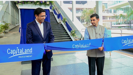The skywalk was inaugurated on Friday jointly by Subramanya Gudge, Bangalore Metro Rail Corporation Limited (BMRCL) Project and Planning Director, and Gauri Shankar Nagabhushanam, CapitaLand India Trust CEO.